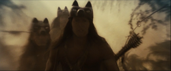 Taha Aki had been away from his body long enough to be in agony. He felt doomed of never being ever to cross the line between life and death. The great wolf followed him through the forest and Taha Aki felt jealous of the animal; at least it had a body and a life. At that moment the Spirit Chief had an idea that changed the future of the Quileutes. He asked the animal if he could share his body with him and the wolf complied. As a single being, the wolf and the man went to the village. The people feared the wolf, shouting for the warriors' help. The warriors came with spears in their hands, but they stopped in surprise of what the wolf was doing: the wolf was retreating from the warriors and trying to yelp the songs of their people. The warriors realized what it was doing and could only think that it was being influenced by a spirit.