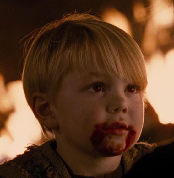 In Breaking Dawn - Part -2, Vasilii displayed round cheeks, blond hair and vampiric red eyes. As described by Carlisle, immortal children were so beautiful that even mature vampires would love them as soon as they saw them.